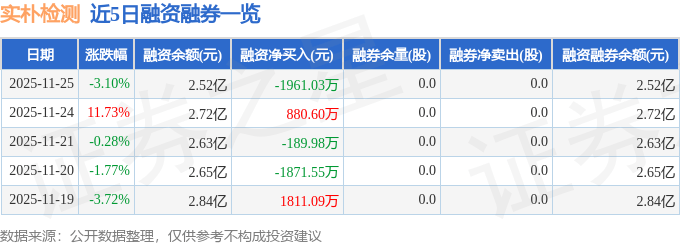 实朴检测融资融券消息显示,融资方面,当日融资买入3849。97万元,融资5811。01万元,融资净1961。03万元。融券方面,融券卖出0。0股,融券0。0股,融券余量0。0股,融券余额0。0万元。融资融券余额2。52亿元。